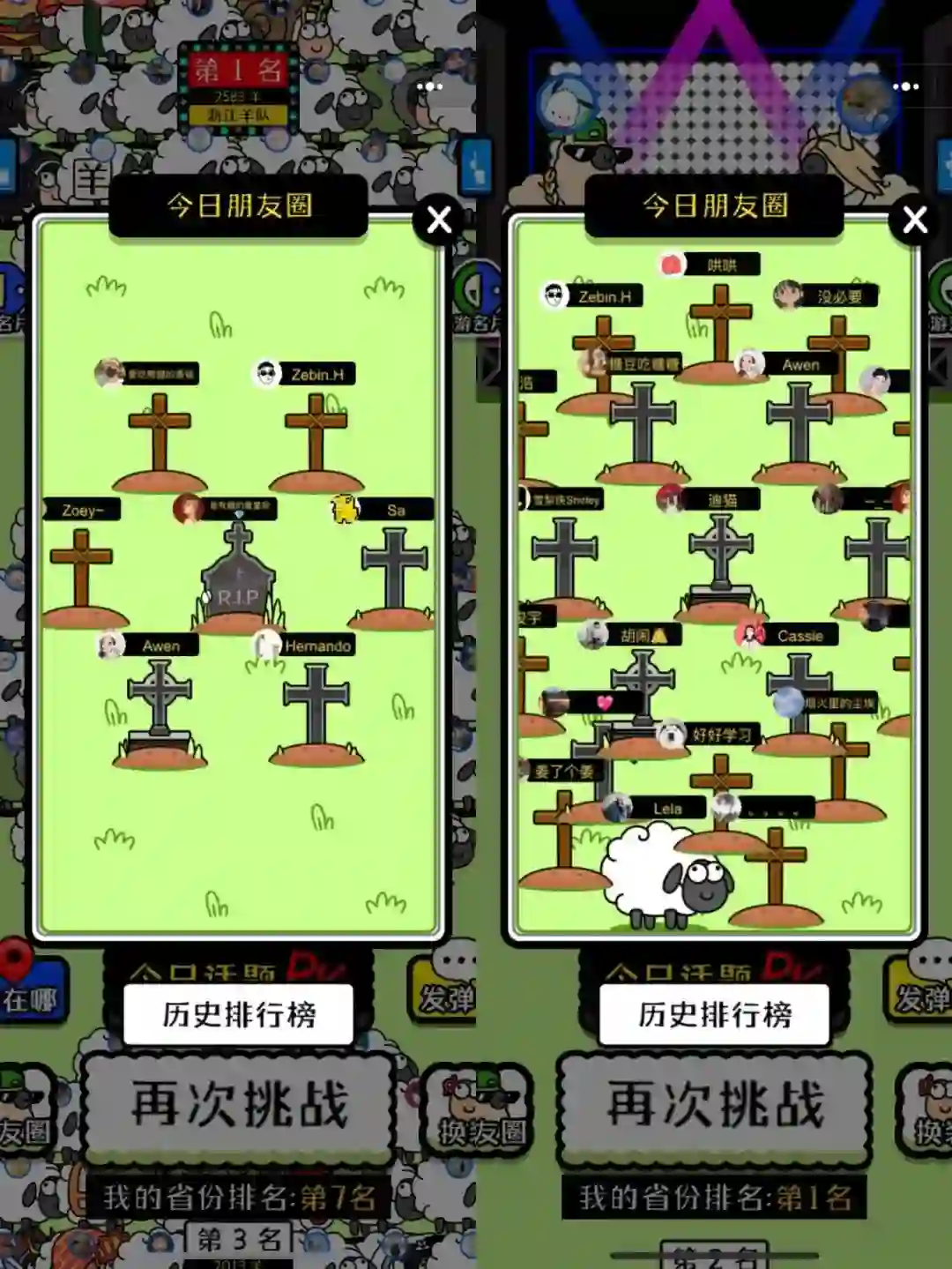 除了会显示好友的头像、昵称,还会以墓碑的形式显示好友的失败次数,失败次数越多,坟墓越好…