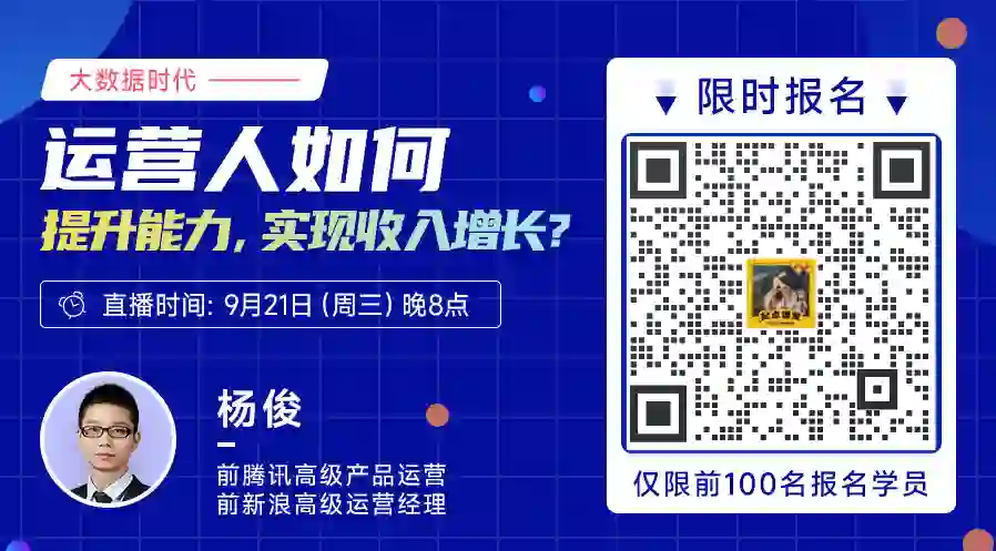 9月21日(周三)晚上8点,拥有16年运营经验@杨俊老师在线直播,用1小时教你如何锻炼数据思维,提高核心竞争力!!