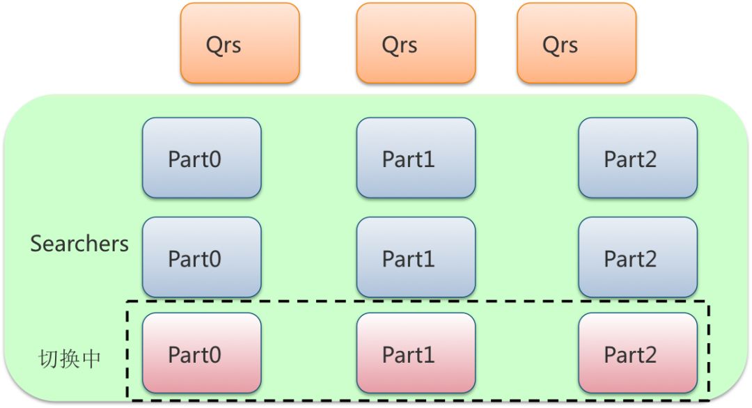 在实际的部署中,Qrs和Searcher都是采用多行部署的方式,可以根据业务的流量变化作调整。Searcher还可以根据业务的数据量调整列数,解决单机内存或磁盘放不下所有数据的问题。