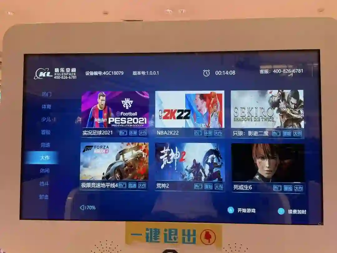 不过,这台机器里的游戏内容十分丰富,有体育、少儿、竞速、格斗等八个类别,30余款游戏,其中不乏《FIFA》《2K》《只狼》《拳皇》等受众极广的大型游戏,且大多都是最新版本。