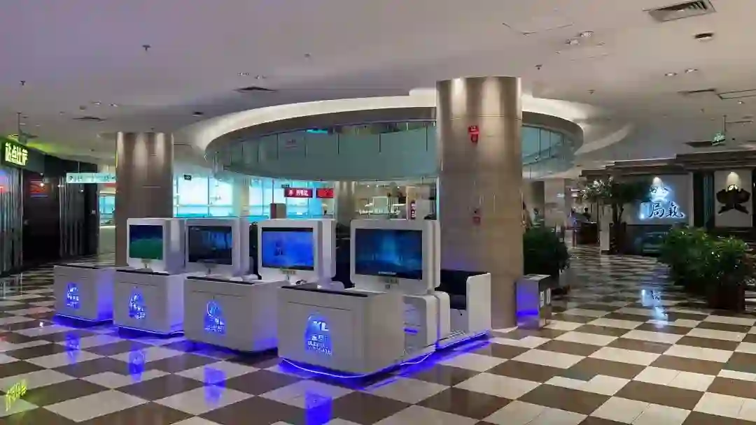 一个工作日的下午,「真探」来到位于常营的BHG MALL购物中心。行至二层就餐区入口,商场中岛摆放着八台大屏显示器,上面播放着《实况足球》游戏画面,“现场解说”不时从设备扩音器中外放出来。刚过中午,商场里行人并不多,没有嘈杂喧闹,游戏音反倒立体环绕,成了环境背景音。