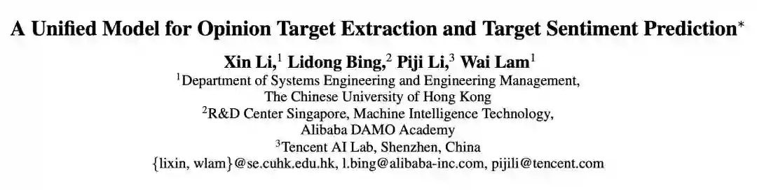 1. A Unified Model for Opinion Target Extraction and Target Sentiment Prediction. In AAAI 2019.