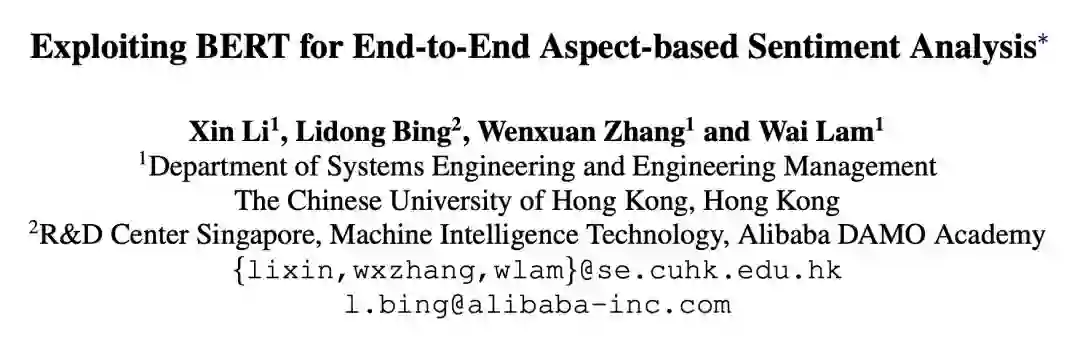 2. Exploiting BERT for End-to-End Aspect-based Sentiment Analysis. In EMNLP W-NUT Workshop 2019.
