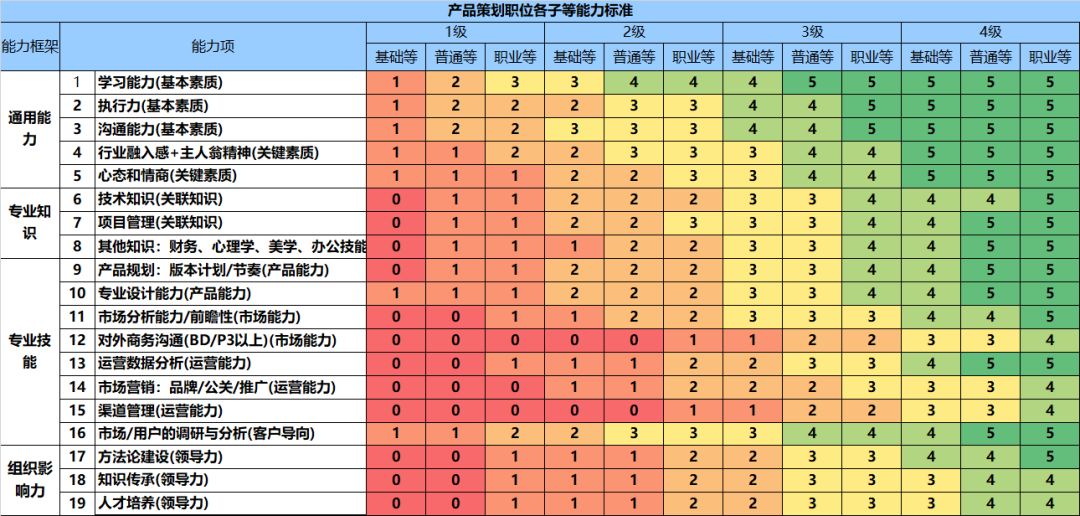 P5、P6人数太少,所以暂且不提。一般只说P1-P4。个人的能力发展是一个逐步积累和提升的过程,并且还需要观察其持续的绩效表现,所以每级下面还分设三个子等:基础级、普通级、职业级。
