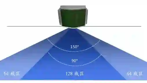 △镭神车规级128激光雷达扫描线束分布示意图