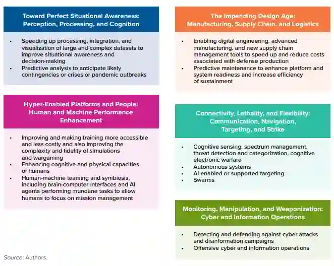对人工智能作为威慑和赢得未来战斗所必需的关键能力,在美国防部内部得到了重视,美国防部在过去五年里对人工智能进行了显著的投资。但是,五角大楼以外的政策制定者,以及公众和正在开发人工智能技术的公司,都需要更好地了解当今人工智能的能力和局限性,并清楚地认识到人工智能对国家安全的积极影响和潜在的破坏性影响。