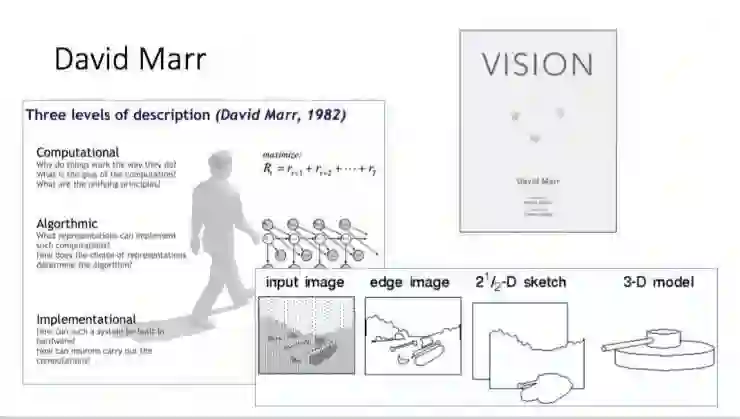 David Marr 在其 80 年代的著作《视觉》一书中提出了计算机视觉的几层构架,描述了视觉的抽象过程,提出对于输入图应该先检测边缘,形成 2.5 D sketch,然后再恢复 3D。但 MIT 教授 Marvin Minsky 在谈及他的这一构想时表示,这个理论很好,但是忽略了核心问题的研究——如何表述一张图像。