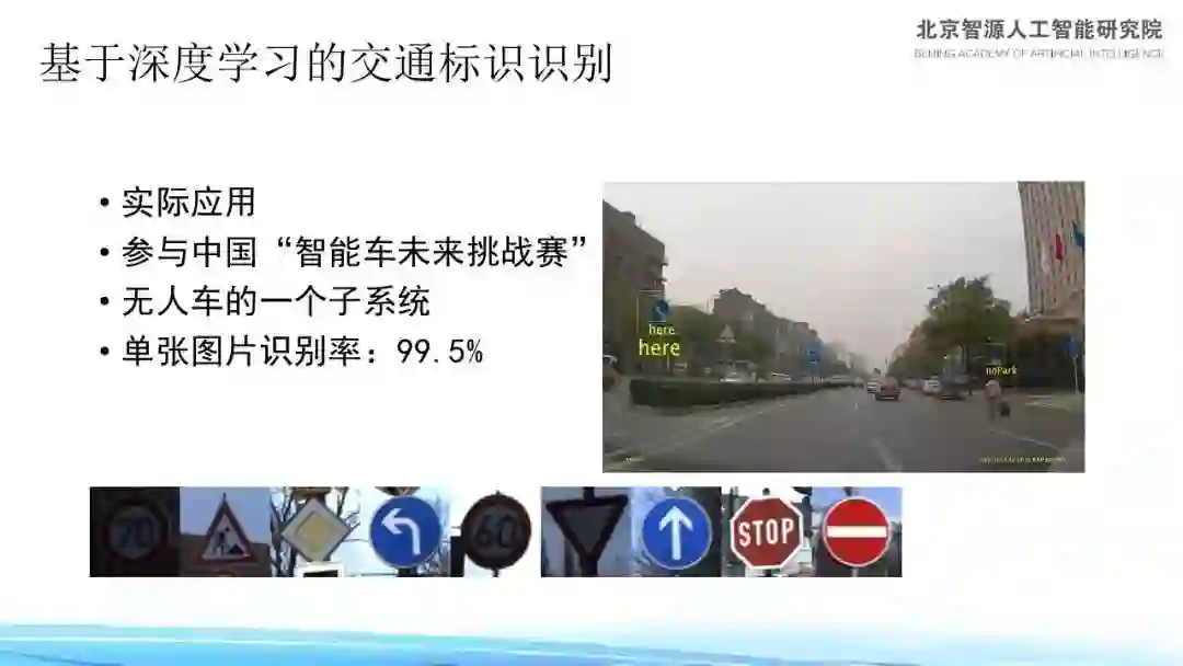 我们早在 2013 年便做过类似的工作,彼时深度学习刚在视觉研究领域得到认可不久,又恰逢团队于 2012 年接到了国家自然科学基金委员会一个关于交通标识识别的项目,其初衷是想支持一些团队的无人车研究工作。虽然车在机械层面的自动控制等问题的研究从 2008 年起的两三年内就陆续有了成果,但基金委方面认为还需要打造一个交通标识识别系统,让车辆在行进过程中“知道”道路前方有什么样的标识。