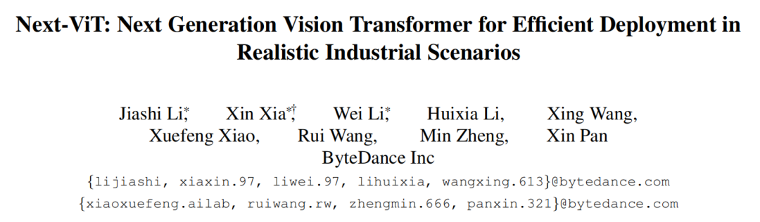 [1].Next-ViT: Next Generation Vision Transformer for Efficient Deployment in Realistic Industrial Scenarios