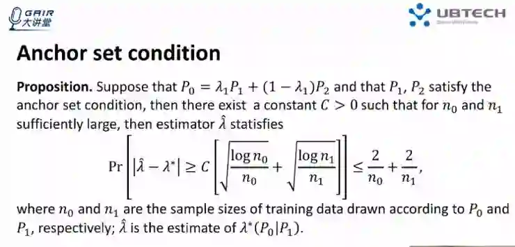 我们可以简单通过上图示例的右边部分来了解,两条黑线所标注的集合就是通常的 Anchor set,在这种情况下,如果拥有 Anchor set 的集合数据,比如有 P0 的数据和 P1 在 Anchor set 中的数据,其实就能通过 Anchor set 的数据来估计出 P1 的比例。