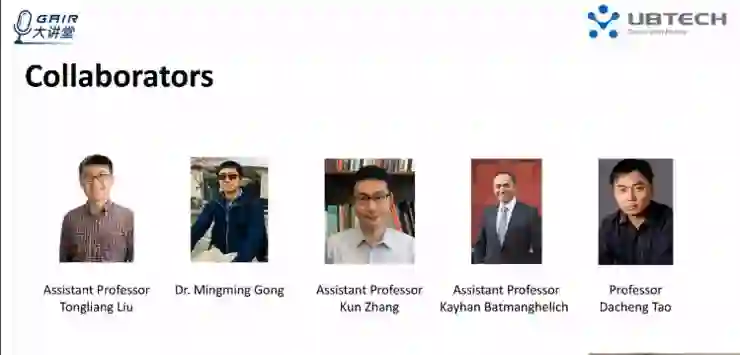 今天的展示中,我想感谢对我的工作提供过很多帮助的合作者们。他们分别是刘同亮老师(悉尼大学助理教授),宫明明博士,张坤老师(悉尼大学助理教授),Kayhan Batmanghelich(悉尼大学助理教授)以及陶大程教授。