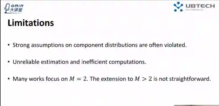 在 Anchor set codition 的条件下,前面的方法已经证明了对比例的估计能够以一定的速率,收敛到最优的那个比例,但是这些方法都具有一定的局限性。首先它们需要很强的对于组成分布的假设,而这些组成分布的假设往往可能被 challenge,后面将举几个简单的例子来看这个问题。