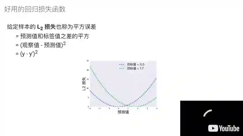 视频也可以调语速,有1.5倍和2倍速的选择。在这个3分钟的短视频里,课程简明讲解了机器学习中的权重和偏差,损失和平方损失等概念。