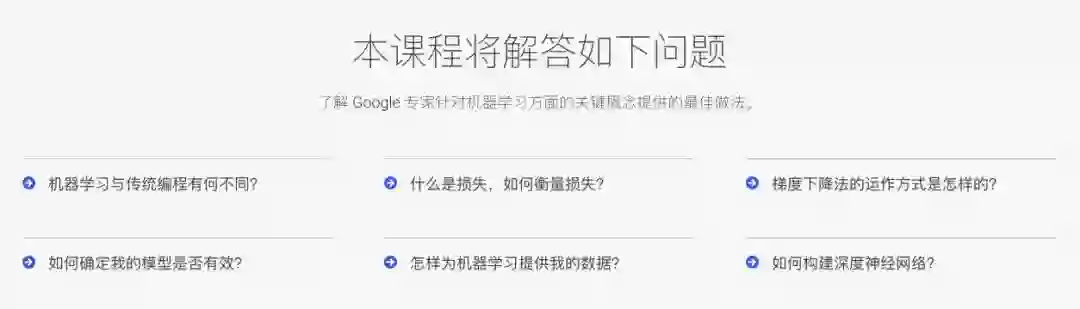 课程提供机器学习关键概念的解释,更重要的是,你可以在该课程中直接了解谷歌的专家针对各类机器学习任务提供的最佳做法。