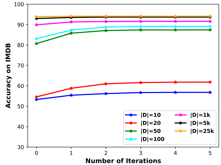 电影:领域内标注数据集 是IMDB Dataset,领域内未标注数据集 是3.4M个来自IMDB的影评。为了探究不同数据量情况下的模型效果,我们分别用 的10, 20, 50, 100, 1K, 5K, 25K进行实验。