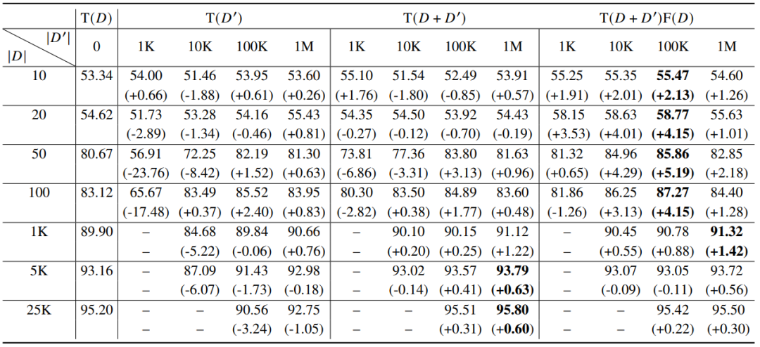从上图中我们还可以观察到一个有趣的现象:当领域内标注数据 很小的时候,领域内预训练可以显著提升最终的结果。换句话说:领域内预训练可以取得更好的小样本学习效果。