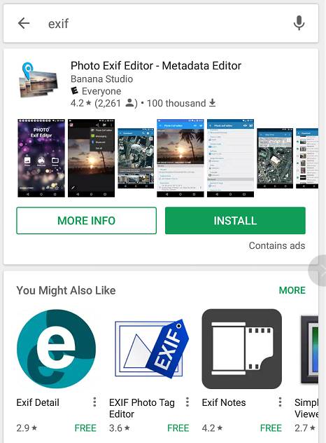 应用市场搜 Exif 关键词,会出来一大堆相关工具