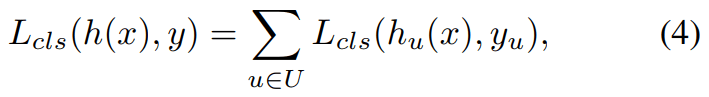 因此一个简单的想法是集成多个使用不同阈值u训练的分类器,如Figure 3 (c)所示,则优化的损失函数为