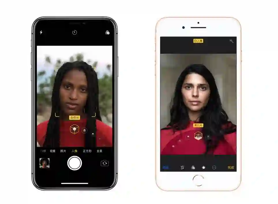 凭借 A11 仿生芯片和全新图像信号处理器,人像光效利用面部识别技术和面部深度图,可以为拍摄对象添加浓重阴影、聚光照明等光影效果,仿佛人工为其打光。