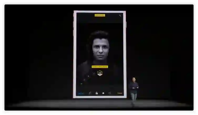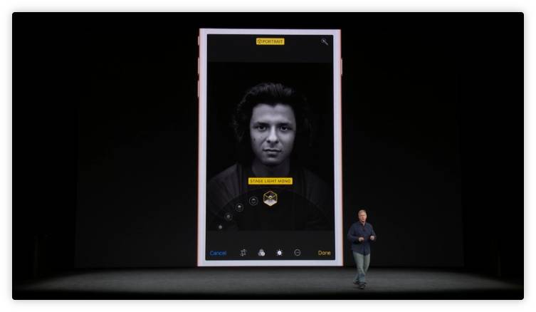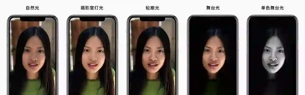 事实上,苹果一直在将机器学习研究成果投入实际应用,去年 iPhone 7 Plus 独占的人像模式就是一个经典运用。而在今年的发布会上,苹果又推出了一个新的摄像功能——「人像光效」,它可以在使用人像模式时生成各种影棚级的打光效果,为你拍出更漂亮的人像照片。