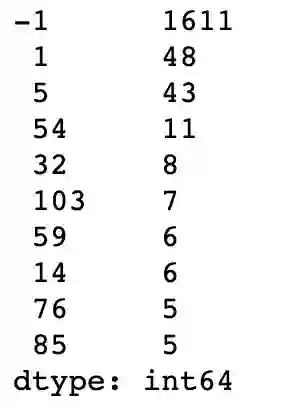 -1 类表示未明确聚类的句子,其他是已被分类的句子。我们分析一下最大的类,表示最重要的主题 (或者评论最多的那个)。