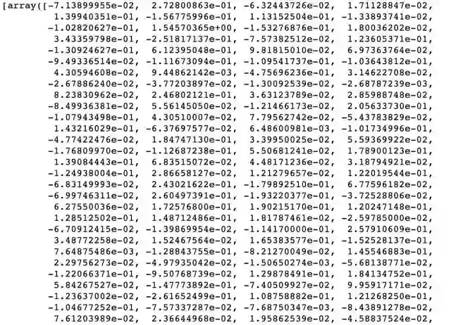 可以看到每篇文章被表示为300维的数组,如下: