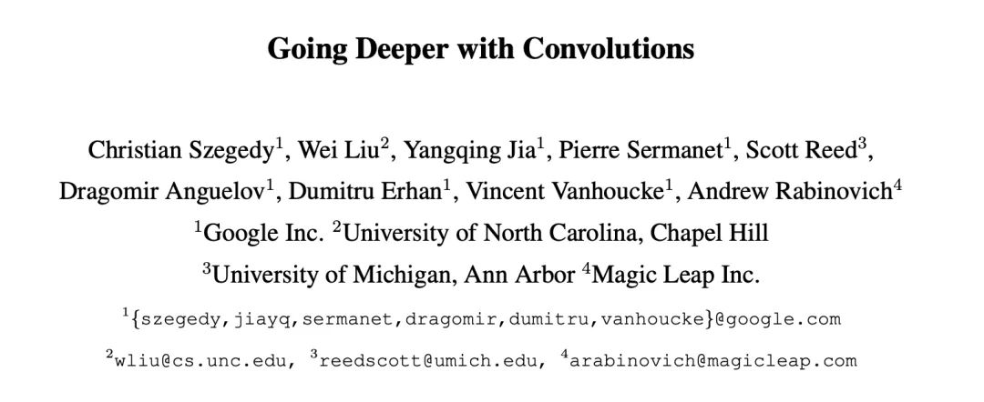 可能大家已经发现了亮点,这篇论文的系列工作在前面就出现过。这篇论文就是开辟Inception家族,并在CNN分类器发展史上留下浓墨重彩的一笔的GoogLeNet。