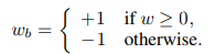 本文提出BinaryConnect主要将全连接和卷积层中的权重二值化,以此将乘法运算变成加法运算,压缩的同时能够加快网络的运算速度。训练过程中,使用全精度的参数对于梯度进行累计。前向传播过程中,权重的取值为全精度记录的参数的符号。反向传播过程中,计算损失相对于二值化权重的梯度并累计在全精度的记录中。