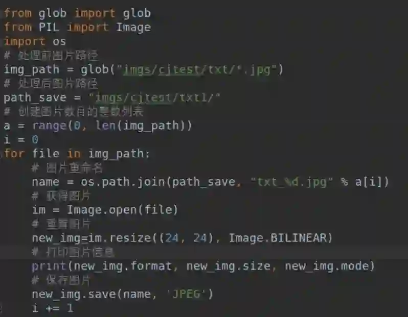 读取数据是将图片文件夹中的图片读入numpy的array中。注意,pillow读取的图像像素值在0-255之间,需要归一化。代码如下: