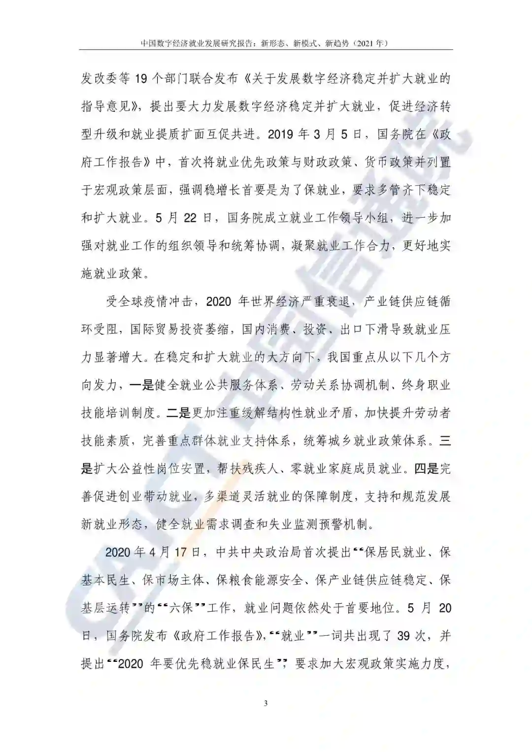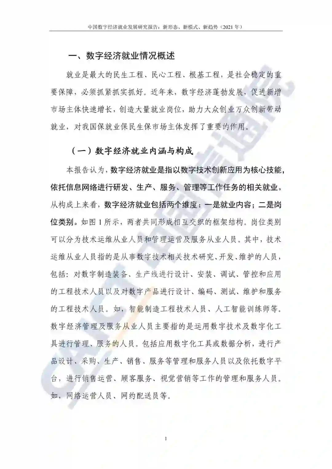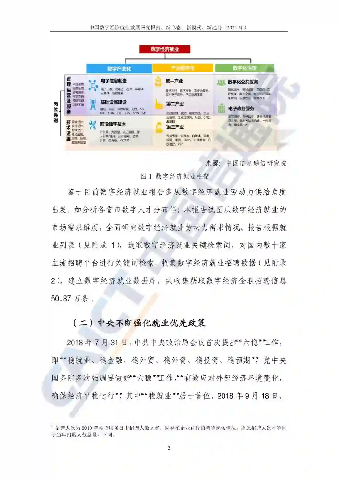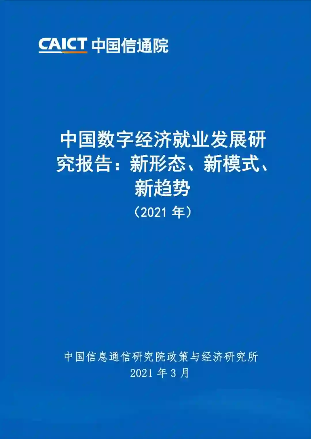 为了深入分析研判我国数字经济就业发展特征、存在的问题并提出应对策略,中国信息通信研究院(以下简称“中国信通院”)政策与经济研究所基于国内数十家主流招聘平台数字经济全职招聘信息50.87万条,研究发布了《中国数字经济就业发展研究报告:新形态、新模式、新趋势(2021年)》。