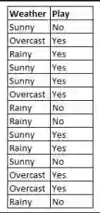 为了确定结果play ='yes'或'no',给定变量weather ='sunny'的值,计算P(是| sunny)和P(no | sunny),并选择结果的概率较高。