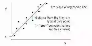 在线性回归中,输入变量(x)和输出变量(y)之间的关系表示为形式为y = ax + b的方程。因此,线性回归的目标是找出系数a和b的值。这里,a是截距,b是线的斜率。