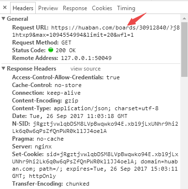 网络面板(Network)会提供实时的网络请求和下载的相关信息。点击网络面板然后F5刷新后下拉网页查看XHR请求可获取request信息: