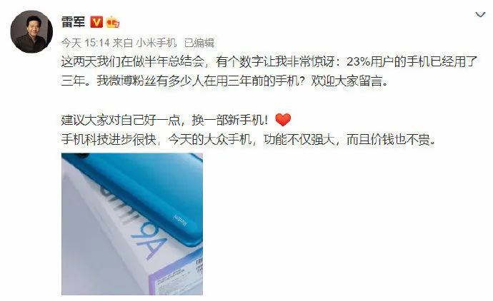 雷军今日下午在微博发文表示:通过总结发现 23% 用户的手机已经用了三年。当然少不了“钉子户”小米 6 ,雷军本人也用狗头进行了回复。