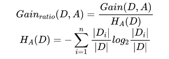 利用信息增益率可以克服信息增益的缺点,其公式为: