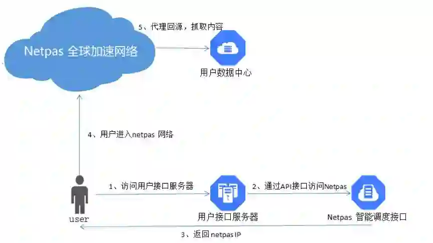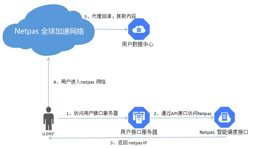 Netpas通过事先配置好的路由条目,将用户请求转发至核心机房