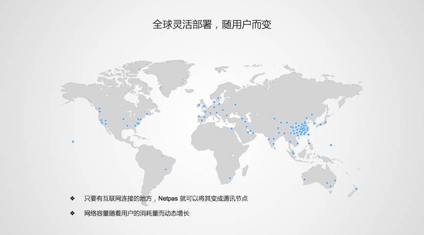 Netpas可以提供两套完善的整体解决方案,分别解决用户访问应用加速,以及服务端之间同步的问题。