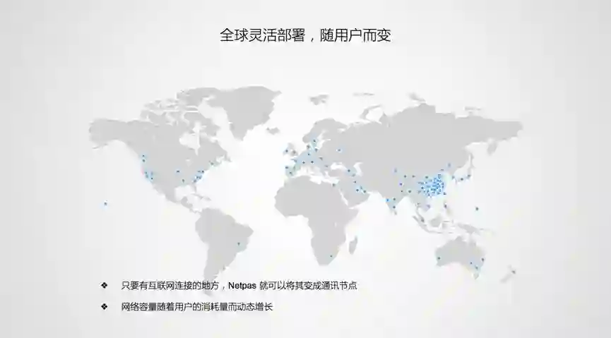 Netpas IP调度方案,部署超过全球72个国家。可以在任何地点进行接入。