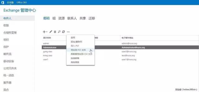 在了解了用户的邮箱使用情况后,我们下一步将邮箱数据导出为PST文件,以方便本地查看和搜索。