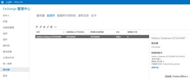 邮箱数据库是创建和存储邮箱的粒度的单位。邮箱数据库以 Exchange 数据库 (.edb) 文件的形式存储。存储结构分为直接附加存储 (DAS)和存储区域网络 (SAN)。我们可以通过 Get-MailboxDatabase cmdlet 从服务器或组织中检索一个或多个邮箱数据库对象。一般为了高可用性至少有两台服务器组成DGA,你可以通过-Server参数指定检索服务器。