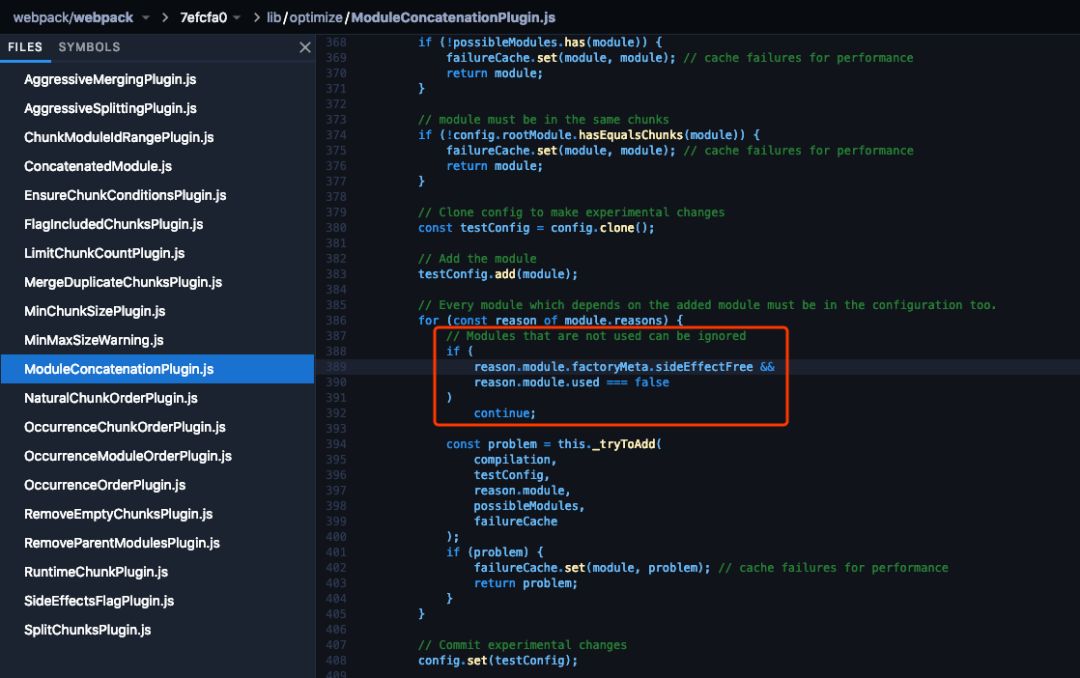 在 ModuleConcatenationPlugin 中,带着 sideEffectFree 标记的模块将不会被打包: