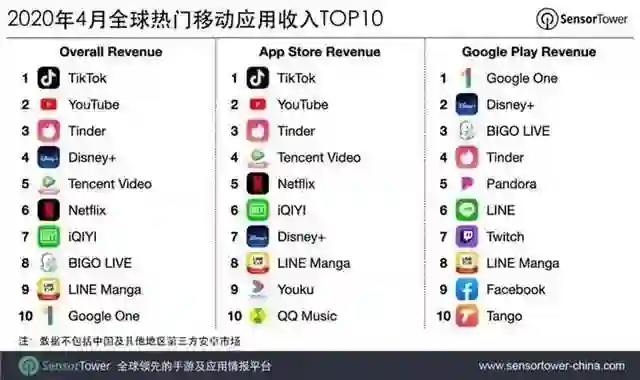 ,较去年4月增长10倍,位列全球移动应用收入榜冠军。