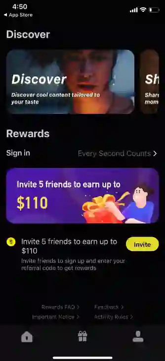 打开App后,无论是从界面还是功能上看,Zynn都不得不让人联想到另一款短视频产品—TikTok,但在运营模式上,该App又有自己独特的风格,也正是凭借这套简单粗暴的“打法”,让Zynn在不到一个月的时间便收割了众多海外用户。