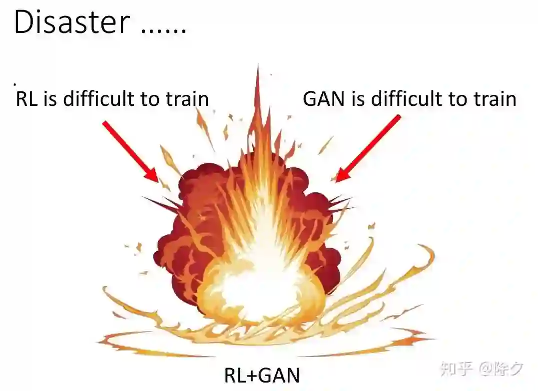 因此,RL+GAN 的方法表面上看起来觉得可行,但实际上训练却难到爆炸。