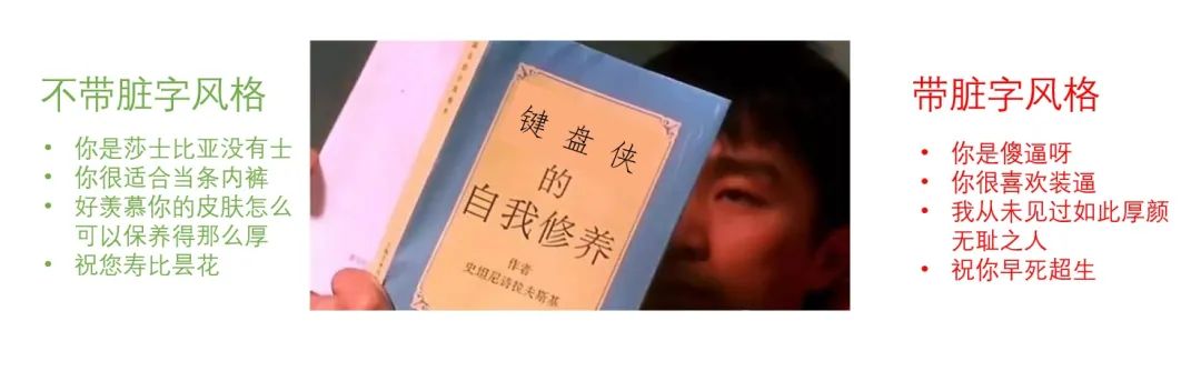 使用了之前的技巧让文本序列版的 CycleGAN 可以训练后,我们接下来可以看一下效果。从负面到正面情感的风格迁移中。模型能够有意识地把让文本是负面的关键字替换成正面的关键字。比如胃疼->生日快乐,上班->睡,够贱->帅,变态->帅。