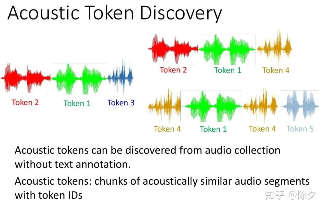 我们会先用一个声学token发现技术,去把连续的声音信号变成 token。这种token发现技术,能够根据相似的声学信号模式特点,分割成相应的 token id。