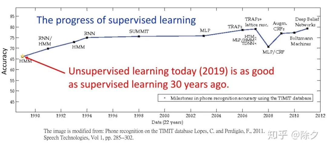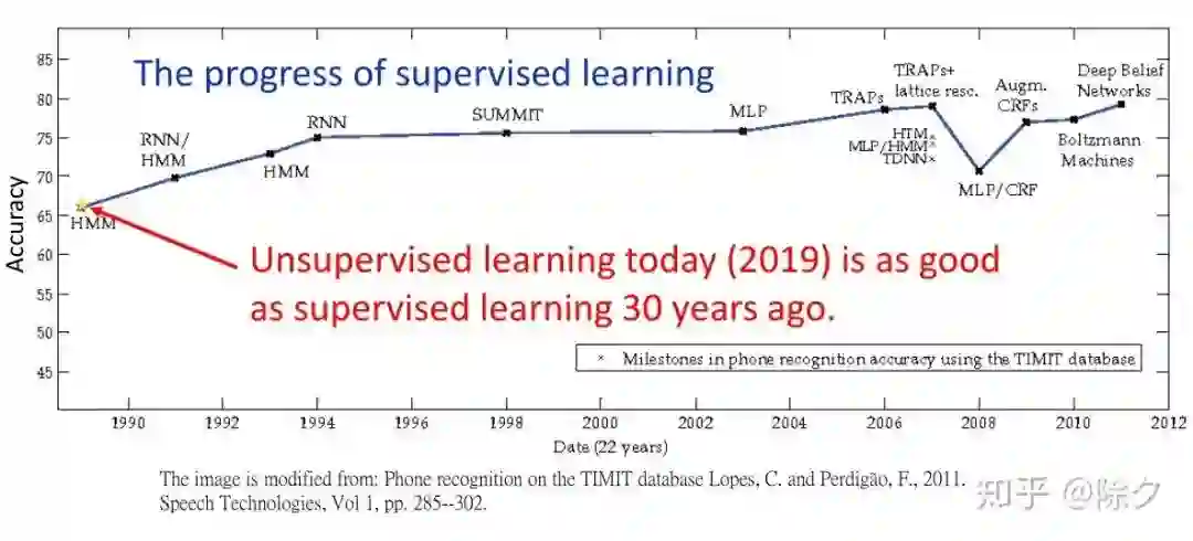 其实当前无监督学习的方法,已经能追平几十年前用有监督学习做的HMM方法了。