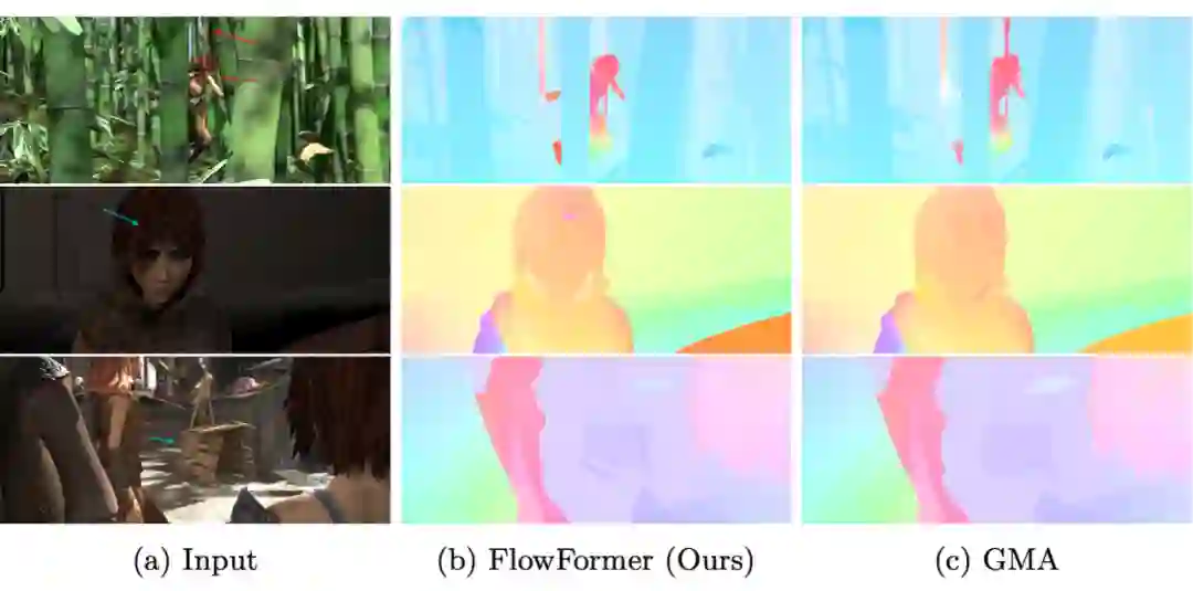 相比于 CNN,Transformer 破除了局部偏差(locality bias)并能进行长程建模。PerceiverIO 开创性的使用纯 Transformer 来学习光流估计,它直接对图像像素 tokenization 并用一个通用的输入-输出映射来学习光流估计。由于它没有用任何针对光流的信息,如视觉相似性,因此其需要大量的参数参数和训练数据来学习(约 80 倍的 RAFT 训练数据量)。因此我们提出一个问题:我们能否同时获益于 Transformer 的长程建模能力并从视觉相似性信息中估计光流?针对这个问题,该论文提出了 FlowFormer。