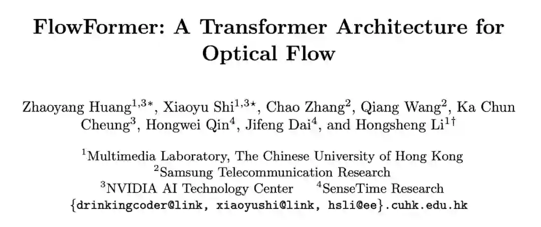 FlowFormer 基于 RAFT 的思想,探索了使用 Transformer 对其进行全方位改进,包含了以下重要模块:1)Alternate-Group Transformer (AGT)层,将 4D cost volume 投影至隐空间编码为cost memory;2) Recurrent Transformer Decoder,使用 dynamic positional cost query 循环的从 cost memory 中提取信息来优化光流估计;3)首次验证了使用 ImageNet 预训练的 Transformer 来编码图像特征可以提升光流估计性能。