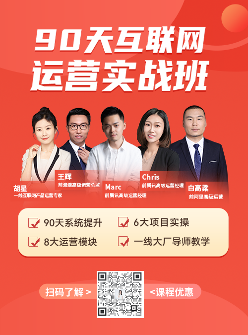 在此推荐腾讯课堂&起点课堂联合办学,专为运营人打造的《90天互联网运营实战班》直播课程。